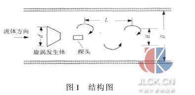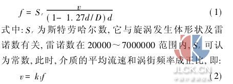 2.2理论推导 由“卡曼涡街”原理可知,单列旋涡的频率f和被测流体的流速v之间呈现如下关系: