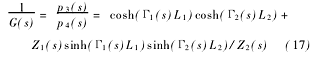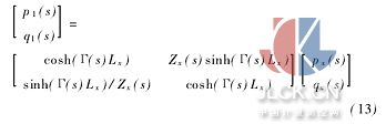 式中,Γ(s)为传播算子;Z(s)为管道特征阻抗;s为拉普拉斯算子。 如果考虑频率相关的摩擦损失,该段管路的Γ(s)和Zx(s)分别为[8]