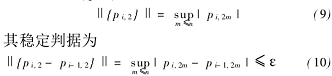 1.3求解方法 通过计算,可得到2端的时间序列。设在第i个M序列周期内2端的时间序列为 {pi,2} = { pi,21, pi,22, pi,23,…, pi,2m, pi,2m+1,…, pi,2n}式中,m代表对应时刻mΔt;Δt为计算步长;l为一个周期内的计算总步数,l = T/Δt。 将序列{pi,2}视为一赋范空间,则其范数为
