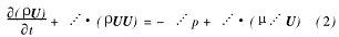 式中,ρ为流体密度,kg/m3;t为时间,s;U为速度矢量,m/s。 动量方程[4]为