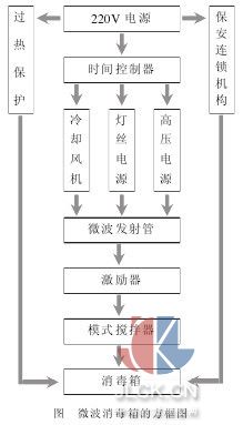 目前, 医疗器械的物理灭菌方法主要是热力灭菌和电离辐射灭菌。热力灭菌中的干热和湿热均属于高温灭菌, 存在对物品的高温损坏和作用周期长的缺点; 而电离辐射灭菌则不适合医院使用。 近年来, 微波消毒方法有较快的发展。国外早在 20 世纪 60 年代前后就有微波消毒的研究报道, 国内军事医学科学院亦在 70 年代开展了微波应用于医疗器械灭菌的研究。本研究的目的是利用微波的热效应和非热效应原理, 设计出适合医疗器械快速灭菌的微波设备, 现将研究结果报告如下。 1 设计原理 微波的热效应属于介质型加热升温, 即强制物体体内水分子自身进行摩擦运动, 使物体内外同时加热, 微波能量直接转换成热能, 获得快速升温的效果。微波场中的微生物分子的水分子被微波高频磁场作用极化成极性分子,同时以每秒 24.5 亿次的速率反复振动摩擦, 使其迅速升温, 致使细菌蛋白发生变性, 导致细菌死亡。 另外, 微波的非热效应是在微波场中, 微生物在电磁场力的作用下, 生物膜面上发生电位变化, 导致生物膜的电子和离子重新分布, 从而扰乱了生物膜的功能。再则, 微波场还可导致微生物分子中的氢键松动乃致断裂。上述因素均可使细菌死亡。 2 电路原理及方框图 当微波加热设备在接通电源后, 由微波发射管产生连续的高频电磁波( 频 率 为2450MHz), 然后经过波导管传送到加热器内,再由模式搅拌器将微波场均匀分布, 作用于加热器内的物质上, 产生热效应和非热效应。方框图如下。