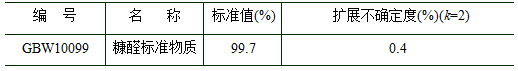 GBW10099 糠醛纯度标准物质 本标准物质主要用于白酒、食品、化妆品等领域相应糠醛成分检测,也可作为生产部门和检测实验室质量控制、日常分析检测、相关仪器检定/校准以及方法评价与验证等。