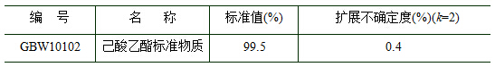 GBW10102 己酸乙酯纯度标准物质 本标准物质主要用于白酒、食品、化妆品等领域相应己酸乙酯成分检测,也可作为生产部门和检测实验室质量控制、日常分析检测、相关仪器检定/校准以及方法评价与验证等。