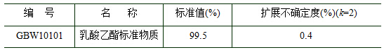 GBW10101 乳酸乙酯纯度标准物质 本标准物质主要用于白酒、食品、化妆品等领域相应乳酸乙酯成分检测,也可作为生产部门和检测实验室质量控制、日常分析检测、相关仪器检定/校准以及方法评价与验证等。