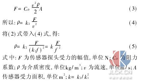 另外,根据流体力学原理,卡曼旋涡作用到传感器探头的力,和介质的平均流速v,介质密度ρ和受力面积A间关系式为: