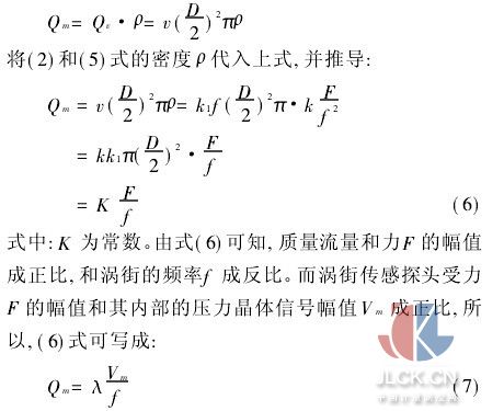 即质量流量和压电晶体信号的幅值成正比,和涡街的频率成反比,λ定义为质量流量的仪表系数是常数。