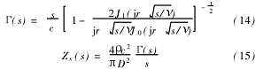 式中,Γ(s)为传播算子;Z(s)为管道特征阻抗;s为拉普拉斯算子。 如果考虑频率相关的摩擦损失,该段管路的Γ(s)和Zx(s)分别为[8]