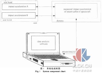 载人飞行中,航天员会遇到超重现象[1]。超重分持续性超重和冲击性超重,在飞船发射或返回过程中会发生持续性超重,作用时间至少持续几秒钟;在飞船返回着陆或逃逸塔救生时会发生冲击性超重,作用时间一般在1 s以内。当冲击性超重值超标,特别是飞船返回着陆时的冲击加速度值过大,可使航天员受伤或致命。因此飞船返回舱着陆冲击加速度对航天员的生命健康有着至关重要的影响,飞船返回舱着陆冲击因素的医学评价对于保证航天员身体健康和生命安全具有十分重要的意义[2,3],是无人飞船医学评价的重要内容。我国的载人航天工程在“神舟”2号无人试验后增加了测量飞船返回舱冲击加速度的试验项目,项目通过研制飞船返回舱着陆冲击加速度测量设备,参加“神舟”3号、“神舟”4号无人飞船飞行试验,获取了飞船返回舱着陆冲击加速度试验数据,回答了返回舱着陆冲击力学参数是否满足医学评价要求,首飞航天员上天后能否安全返回的重大问题。 研制过程中的关键技术 由于该项目立项时,“神舟”3号飞船设计已经完成,飞船系统无法提供本设备的供电、重量、指令触发等技术问题,因此这些问题也就成为产品研制过程中首先要解决的。 设备供电船载电子产品工作需要电源,而设备电源来源不外乎两种,由飞船电源系统供电或设备自带电池供电。由于本项目的特殊性,其功耗未在飞船电源系统的最初考虑范围内。而且飞船返回着陆时,飞船返回舱着陆目线存在断电动作,可能导致系统无法正常记录着陆冲击加速度值。因此必须研制专用电池组,为系统提供电源。电池组电源开关在飞船待发段由地面人员打开,在飞船返回地面后由地面人员关闭。 重量与设备供电问题一样,设备重量、体积也未在飞船系统考虑范围内,但任何设备不可避免地存在体积、重量。为不影响飞船重量,将我所承担的无人飞船形体假人进行改装、配重,将设备安装在假人胸腔,保证整体重量满足形体假人交付要求,设备传感器电缆从假人颈部引出。冲击加速度传感器的安装传感器安装位置对数据测量结果影响较大,为最真实准确地测量航天员着陆时冲击加速度值,安装在航天员乘坐的返回舱座椅背面,对应于航天员头部和腰部位置。该位置是人体着陆冲击过程中最易受伤的两测量点,每个测量点均包括x、y、z方向。 数据存储记录的阈值上天产品的存储空间非常宝贵,不可能一直对数据进行采集存储。为了保证长时间的数据采集存储,必须要降低数据采样率。而为了尽可能地包含更多的信息,又要求数据采样率尽可能高,根据采样定理,至少要大于信息中最高频率分量的2倍。系统设计考虑了综合因素,设定采样阈值,系统一直按照2 K采样率对各通道数据进行采样,小于阈值时只采样不存储,大于或等于阈值后,则边采样边存储。系统测量的准确性系统测量准确性问题在设计开始就予以高度重视,必须保证测量数据的准确可靠,影响测量准确性的因素包括:传感器精度、线性度,数据采样时的AD精度问题,地面数据处理软件的算法等等。选用的传感器在装配前必须经过校准、标定,装配后整套系统还由精度更高级的类似测试系统进行标定,地面数据处理软件的算法尽可能采用测试系统算法等等。 设备组成及工作模式 返回舱冲击加速度测量设备主要由冲击加速度传感器、数据采集存贮装置、自带专用电池组、地面数据回放处理设备和相应软件组成,详细系统组成框图如图1所示。