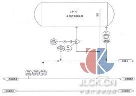 一次热媒系统是一个完整的闭合循环回路,热媒通过热媒泵从热媒炉顶部进入炉内盘管,加热并从炉底输出进入热媒总管。热媒供聚酯装置总管温度设计控制在330℃左右,一次热媒系统回路上设有热媒膨胀槽23-T01(设置在聚酯装置的最高点),以补偿热媒在循环回路中由于温度变化所产生的热膨胀或收缩,保证一次热媒系统正常稳定运行,同时热媒膨胀槽23-T01对二次液相热媒系统用户的循环管路具有脱气、脱水的作用。在一次热媒循环系统供、回总管之间设有差压控制回路PdIC-50004,用来控制总管传热热媒的流动压差,以确保一次热媒系统的供给流量,从而完成一次热媒系统与二次热媒系统之间的热量传递。 另外设置液相热媒低点收集槽23-T02用于收集设备管线检修时排放的液相热媒,当某个二次回路的热媒需要排放时,先收集在23-T02中,再用泵送回热媒站;及汽相热媒收集槽23-T03用于收集汽相热媒排放。紧急情况时,一旦热媒膨胀槽23-T01压力不能维持,联锁停热媒炉,加热系统将停止运行,须停止进料,开始停止反应并排废。 3 热媒系统中的安全控制设计 (1) XV-23007 热媒膨胀槽23-T01的作用是维持循环系统的恒定压力。 ① 工艺方案 管道2502伸至23-T01内部,若压力升高,则自管内溢流到23-T01内部;若压力下降,则经由XV-23007自动补充。因此,XV-23007起定压作用。 ② XV-23007状态 * 正常时,由于其定压作用,所以XV为阀开(open);此时,气路畅通,但被电磁阀切断。 * 气源故障时,XV为阀开(open),因为阀设计时即为F.O.,考虑到安全状态;此时,气路断。 * 紧急情况时,XV为阀关(close),ZS/C信号送热媒站停炉;此时,气路通,通过HS-23006,令电磁阀得电开启,气源到达膜头,阀门关闭。 (2) 热媒炉联锁停炉信号回路分析 原则:安全栅的relay应为常带电(energised)状态 (3) F.O.(Failure Open)阀的正/反作用确定 原则:①满足控制的要求 ②符合工艺人员手动操作时的感性认识 例:PdV-50004 Pd上升→需PdV阀开度加大 ∵ PdV为F.O.,即气关,气信号增加→PdV阀开度减小 ∴ Pd上升→需气信号下降→PdV阀开度加大,即反作用; 方法:将控制点的作用方向设为反作用,以满足自动控制时的信号要求。 问题:手动时,因为是气关阀,零信号时,阀为全开,∴给20%的输出信号时,阀杆会停在80%的位置,即信号上升→阀门开度减小,不符合人的感性认识。 方法:将控制点的作用方向仍然设为正作用,而在AO点的组态中,将Set Details项设为ReverseOutput。 如此,即可同时满足①&②原则。