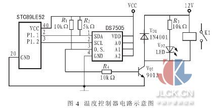 在设计中利用发光二级管(VQ2)作为指示灯 ,其点亮 、熄灭表示加热器的加热状态和降温状态。 为了防止三极管 VQ1击穿[6],在电路上并联一个二极管(VD1),起保护作用。 5结语 DS7505 是一种无需任何外部器件就能实现温度测量的数字温控器,是拥有独立温控能力的器件。 它体积小,编程简单,且精确度高,耗电低。 在设计的温度测量系统中选用了 DS7505数字温控器,实际应用证明该器件使用简单、测量精度高,并且不易受环境因素干扰,具有良好的适应性和扩展性。 摘自:中国计量测控网