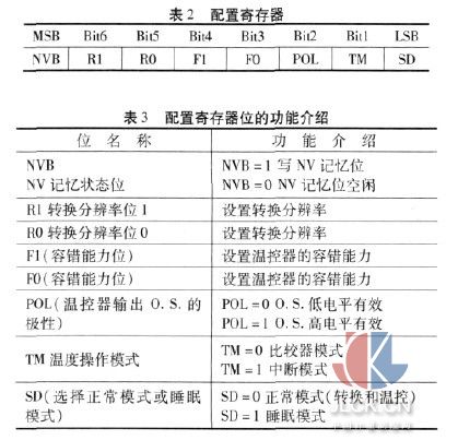 2.2配置寄存器 使用配置寄存器来设置 DS7505, 如温度数据读取分辨率、操作模式、容错能力、输出引脚极性等设置。 该寄存器的各位表示如表 2 所示,表 3 是对其各位功能的详细描述。