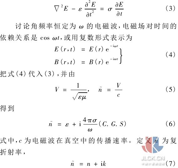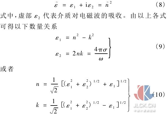对大多数材料,在可见光波段光频电场E的频率不足以使电子的磁矩发生响应,因此可认为μ= 1,同时,如果介质内不存在自由电荷,包括实部n(折射率)和虚部k(消光系数)2个量,通常是波长的函数。 引入复介电函数ε~,其物理意义为介质对外加电场的响应,定义