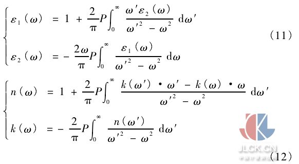 因此,只要测出材料的光学常数n和k,即可换算得到其ε~,或知道ε~即可求出材料的其他光学常数。 椭偏光谱测量以光的偏振态为测量手段,可快速、准确地获得材料的光学常数与复介电函数,并且能方便、快捷地应用于薄膜材料的测量,是研究薄膜材料物理性质的理想手段[4]。 另外,Kramas等的研究表明:由因果关系决定的光学响应函数ε~的实部与虚部之间,光学常数n与k之间并非完全独立,而是由一系列表达式所联系,即Kramas-Kronig关系(简称为K-K关系):